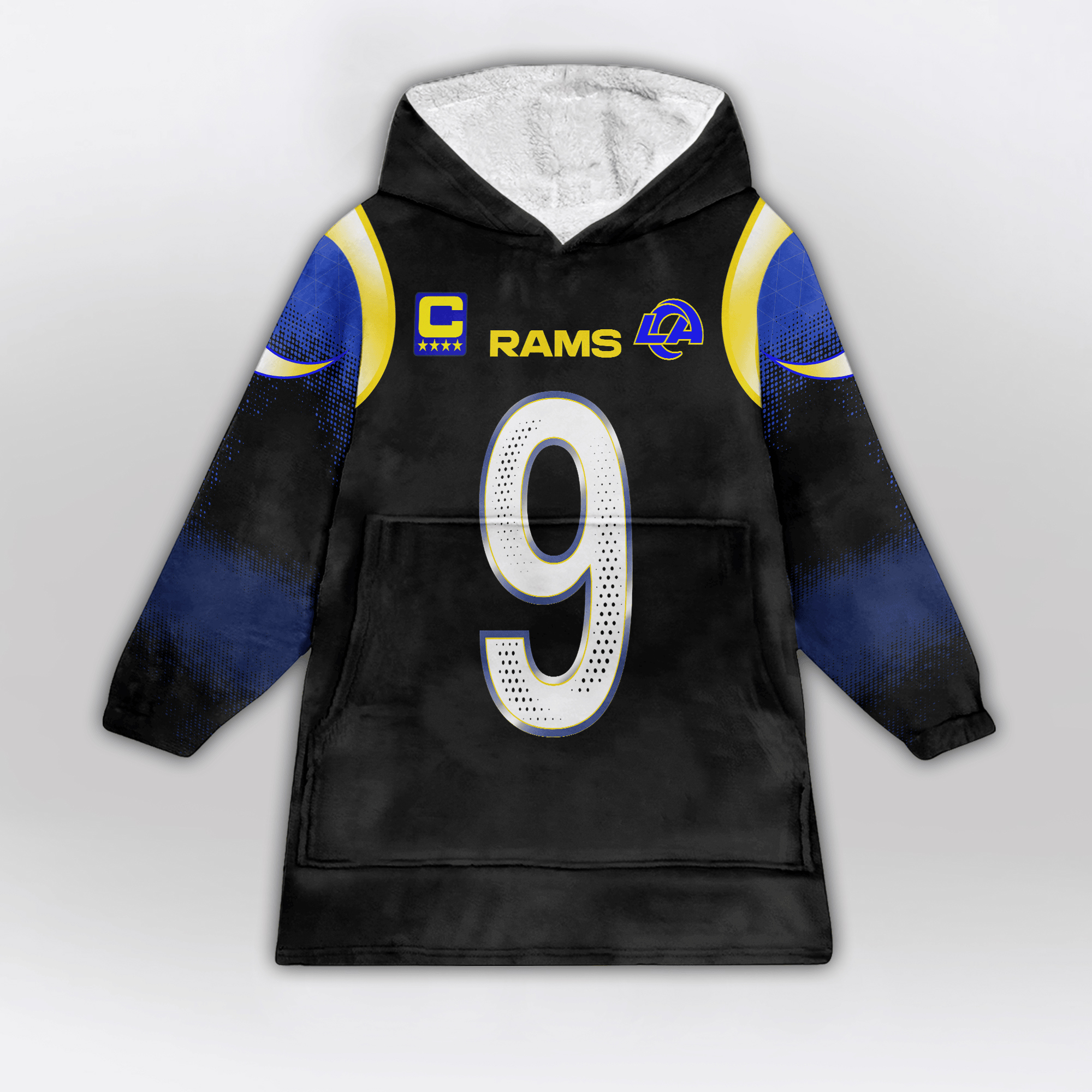 Introducing the Stafford 9 Los Angeles R Football Unisex Blanket Hoodie the ultimate mix of comfort, style, and team spirit. Whether you’re cheering on your team at home or just relaxing in style, this hoodie is perfect for staying warm and cozy while supporting your favorite football team.