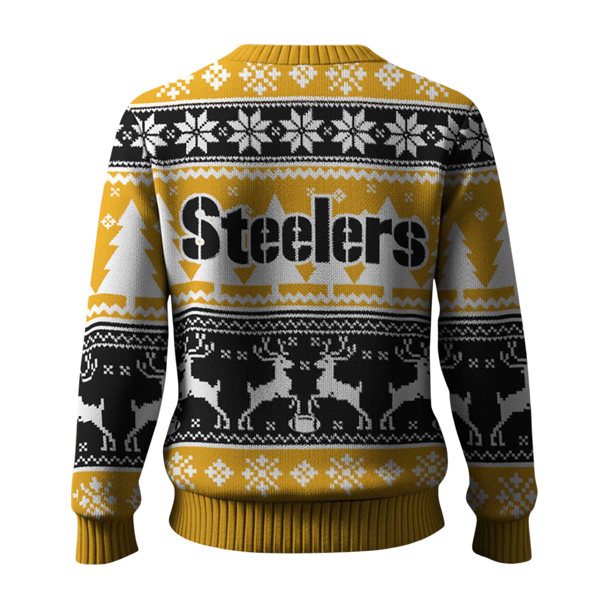Steelers Reindeer Football Christmas Ugly Sweater: Celebrate the Season with Black, Gold, and Holiday Cheer
