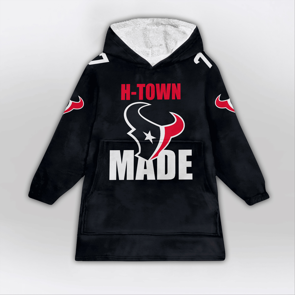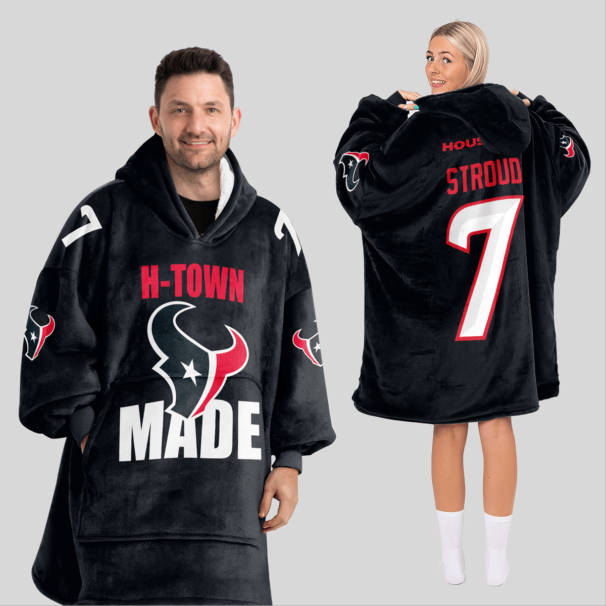 The Stroud 7 Texans Football Unisex Blanket Hoodie embodies Houston’s relentless energy with a look that’s as iconic as the city itself. The front features the “H-TOWN MADE” slogan in powerful red and white lettering above the Texans logo — a symbol of grit, unity, and pride. The back proudly displays “STROUD” and the number 7 in bold red-trimmed white, representing one of the brightest stars leading the team’s next chapter. Team patches on each sleeve and shoulder details complete the authentic football aesthetic that fans can wear year-round.