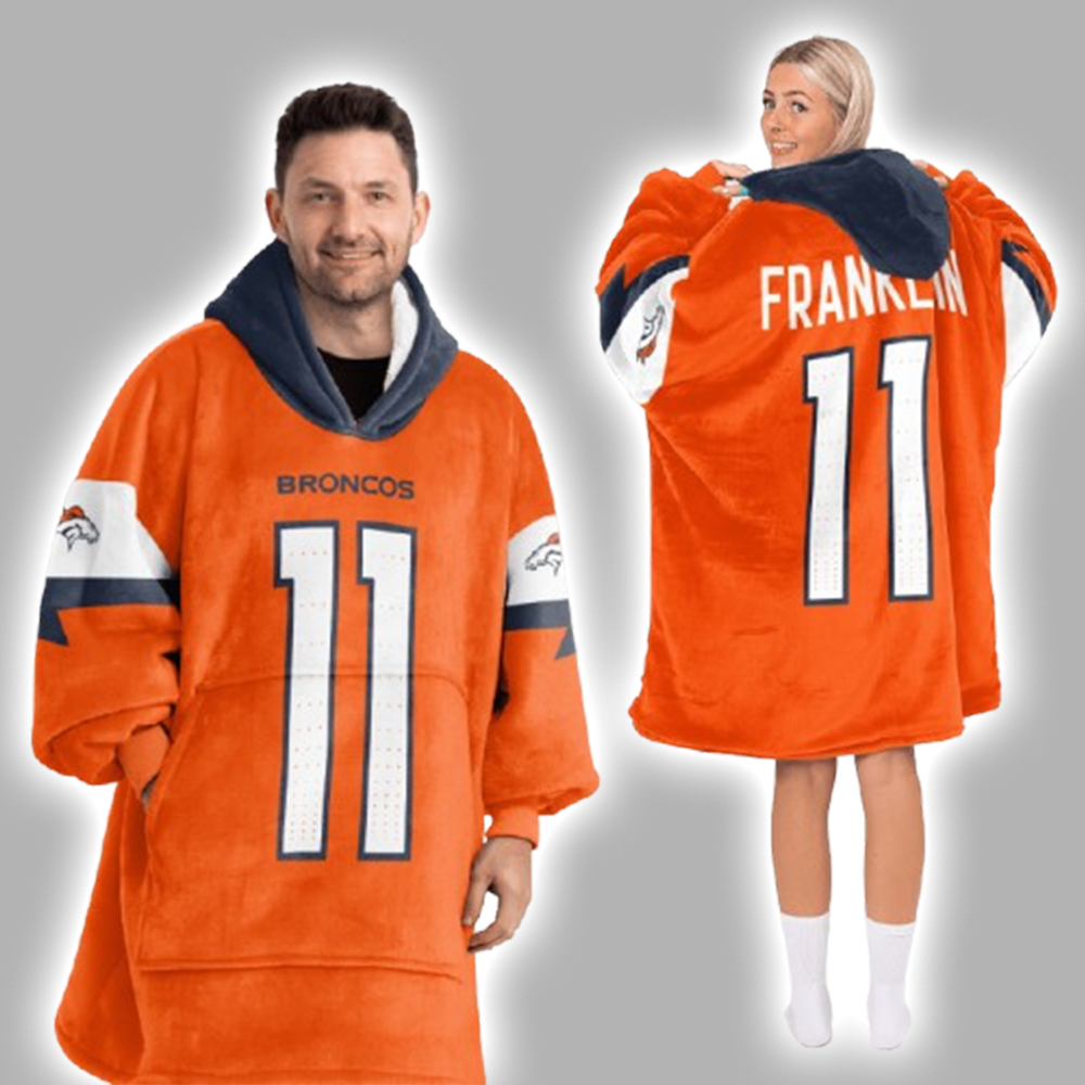 This high quality hoodie features the iconic Broncos orange and the number 11. The wordmark BRONCOS is on the chest, and the sleeves are accented with team stripes and the horse-head logo. On the back, you’ll find FRANKLIN above the number, celebrating the new talent. The number 11’s use here symbolizes a new chapter for the Broncos offense. The oversized hood and a large front pocket add to its comfort and practicality.