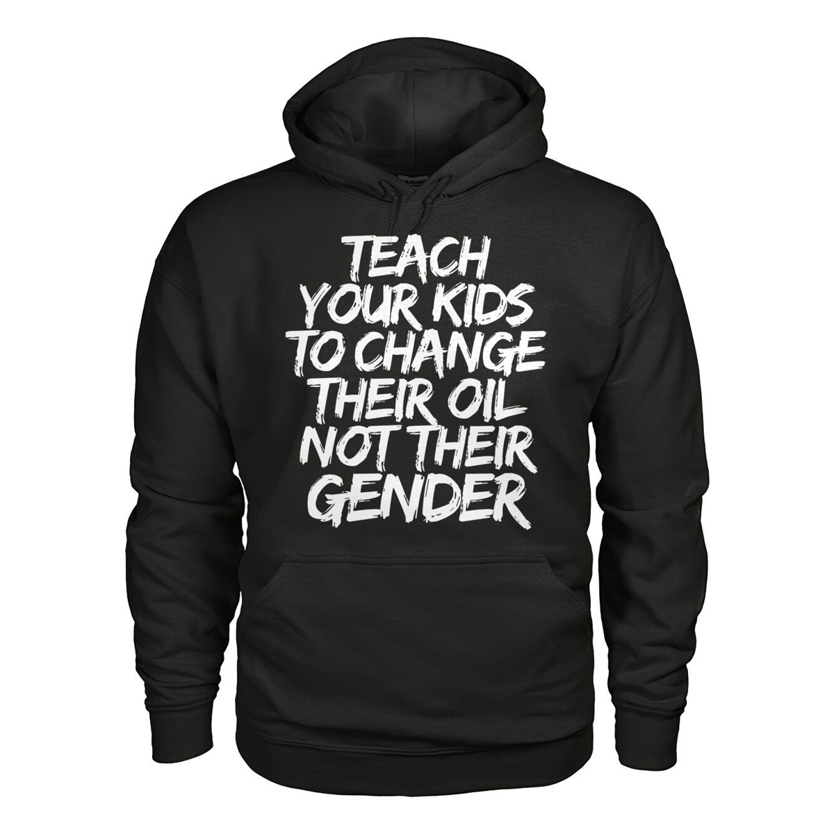 This classic black shirt features the phrase “Teach Your Kids To Change Their Oil Not Their Gender” in bold white letters. The graphic is printed in a distressed style, giving it an edgy, modern look that grabs attention. The simplicity of the black background with the contrasting text makes the message even more striking. Made with high-quality fabric, this shirt is not only durable but also comfortable for everyday wear, offering a perfect fit for anyone who wants to combine style with a strong personal message.
