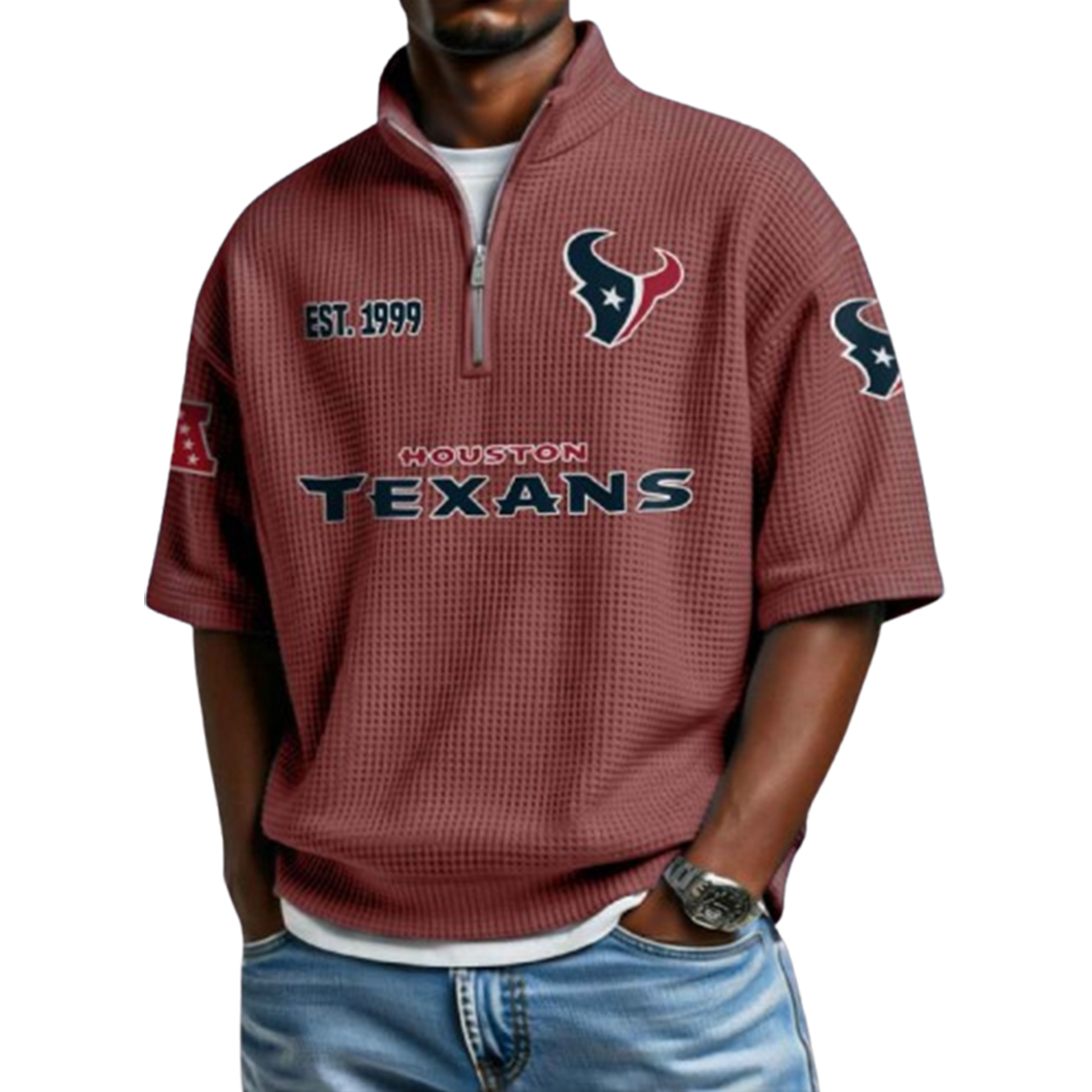 The quarter-zip neckline adds versatility, allowing you to wear it zipped up for a sharper appearance or slightly open for a relaxed, layered style. This design references the early era of the Houston Texans, a period when the city embraced a new chapter in its football story. Since that inaugural season, the team has grown into a defining symbol of Houston sports culture, and this shirt reflects that evolution, respecting the past while staying relevant today.