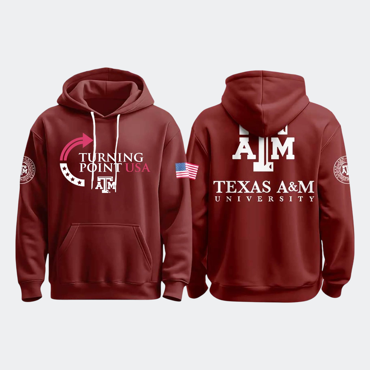Every generation has a moment when pride, purpose, and conviction meet and for Aggies, that moment is now. The Texas A&M University Turning Point USA Hoodie 2025 celebrates the spirit of leadership, free thought, and the unity of the Aggie community. Designed in the university’s signature maroon, this hoodie brings together the bold confidence of Turning Point USA and the proud legacy of Texas A&M.