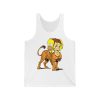 This crisp white cotton t-shirt features a surreal, colorful illustration of a lion with three heads: Homer Simpson’s yellow face on the left, Betty Boop’s iconic black-and-white look on the right, and the lion’s roaring head in the center, complete with a mane. The design is playful and chaotic, with no text, letting the imagery steal the show. It’s comfy, eye-catching, and perfect for casual wear, conventions, or turning heads at any gathering.