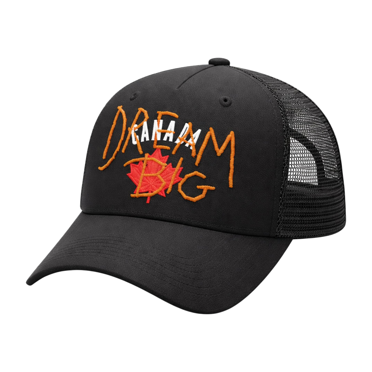 At first glance, the Timothee Chalamet Dream Big Trucker Hat stands out through its understated design and meaningful details. The structured black front panel is contrasted by breathable mesh backing, creating a balanced silhouette that works year-round. Embroidered across the front is the phrase “Dream Big,” stitched in a hand-drawn style that feels raw and personal rather than polished. A subtle leaf motif woven into the lettering adds a poetic layer, hinting at growth, creativity, and individuality. The curved brim and adjustable snapback make the hat easy to wear, whether paired with a casual tee, layered outerwear, or minimalist outfits inspired by contemporary city fashion.
