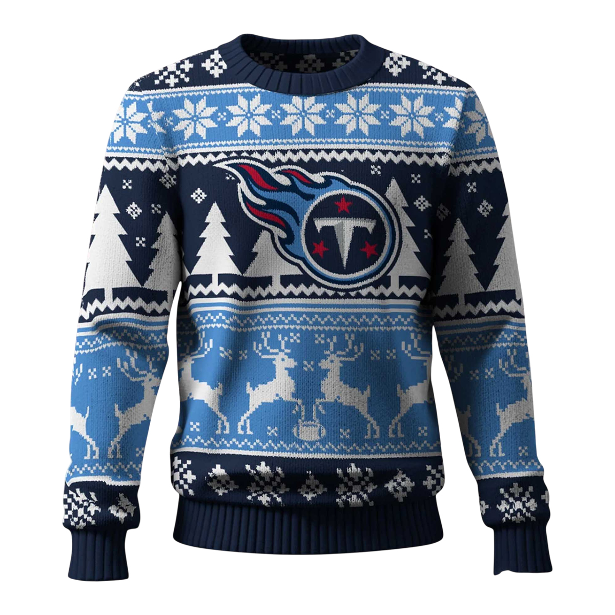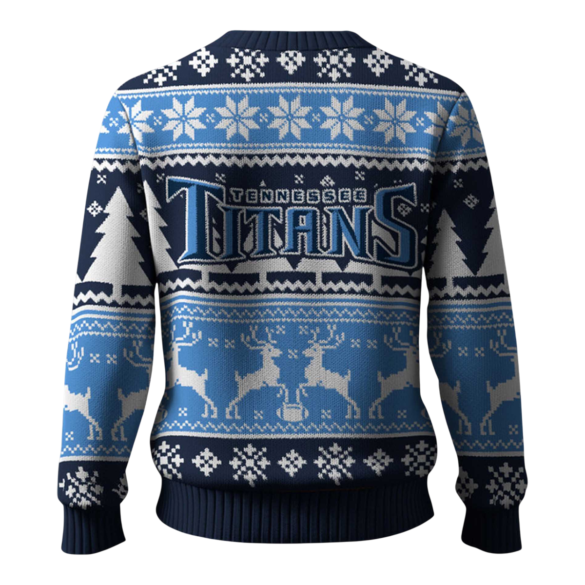 Bring your holiday spirit and football pride together with the Titans Reindeer Football Ugly Sweater, the ultimate winter essential for fans who live and breathe the game.