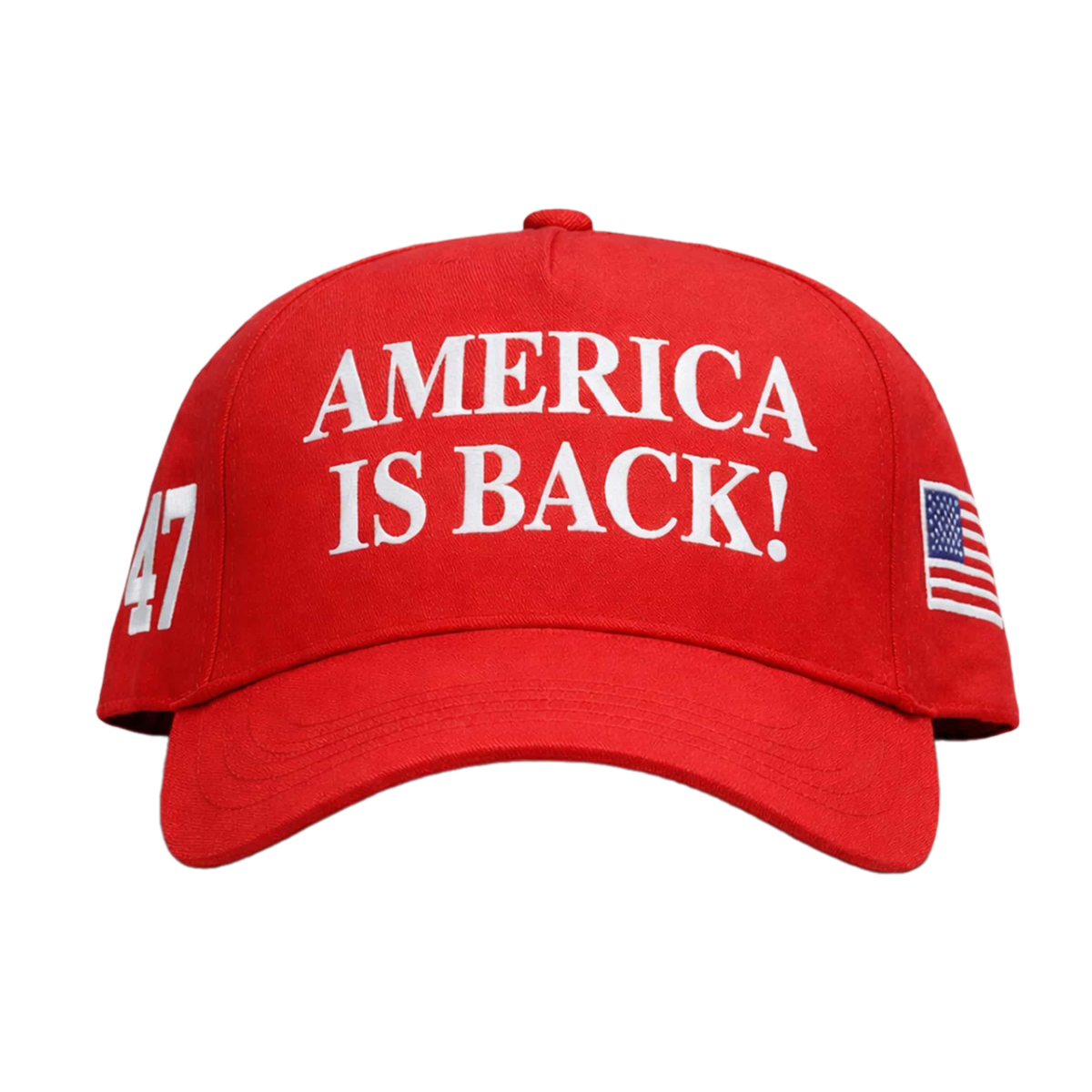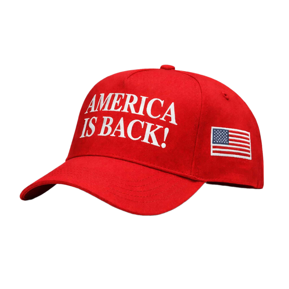 The Trump America Is Back Hat 2026 features a vibrant red crown paired with a gently curved brim, creating a timeless silhouette that feels both familiar and modern. Across the front panel, the phrase “AMERICA IS BACK!” is embroidered in crisp white lettering, designed for maximum visibility and impact. The font choice is bold and clean, ensuring the message is readable from a distance while maintaining a balanced, well-spaced layout.