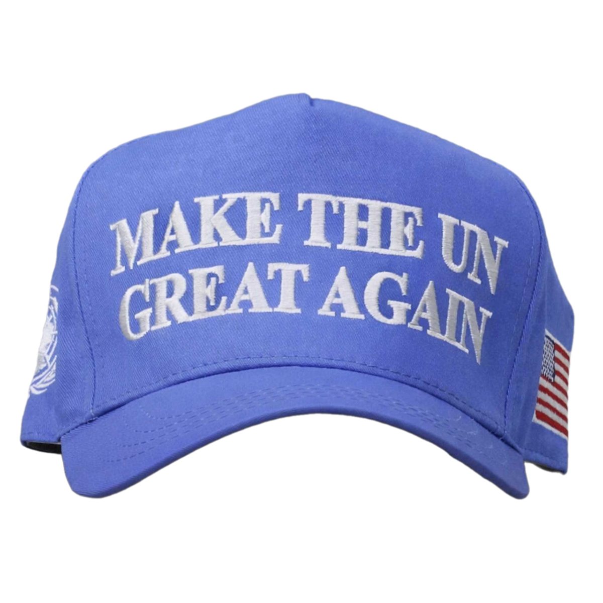 The Trump Make The Un Great Again Hat features a vibrant blue crown paired with crisp white embroidered lettering across the front, creating a sharp contrast that immediately draws attention. The structured six-panel design provides a clean, polished shape that holds its form, while the curved brim offers both sun protection and a timeless athletic look. On the side, an embroidered American flag patch adds an extra layer of patriotic flair and detail. Crafted from durable, breathable fabric, this hat is designed for everyday wear—whether you’re attending rallies, social gatherings, outdoor events, or simply running errands. The adjustable strap at the back ensures a comfortable, secure fit for most head sizes, making it a versatile accessory for a wide range of wearers. Precision stitching and high-quality embroidery enhance the overall finish, ensuring the slogan remains bold and visible over time. The lightweight construction allows for extended wear without discomfort, making it suitable for all-day use in various settings.