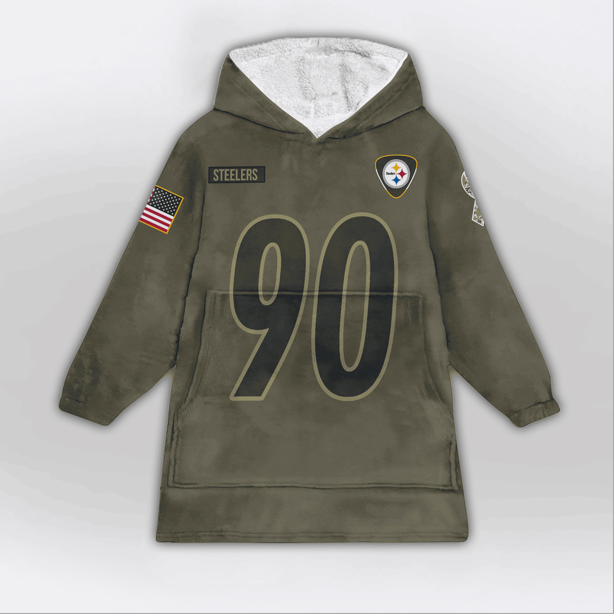 The Watt 90 Steelers Football Unisex Blanket Hoodie captures the essence of steel-town grit with a design that’s both bold and meaningful. Featuring an army green tone inspired by military appreciation games, it pays tribute to strength, service, and solidarity. The front showcases a large “90” centered beneath the Steelers logo and nameplate, while the back proudly reads “WATT,” leaving no doubt about the powerhouse this design celebrates.