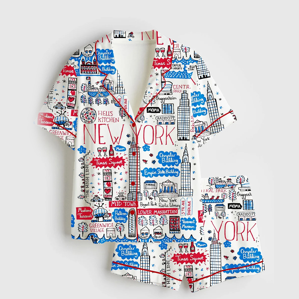 Women’s New York Travel Short Sleeve Satin Pajama Set: A Stylish Journey Through the City That Never Sleeps