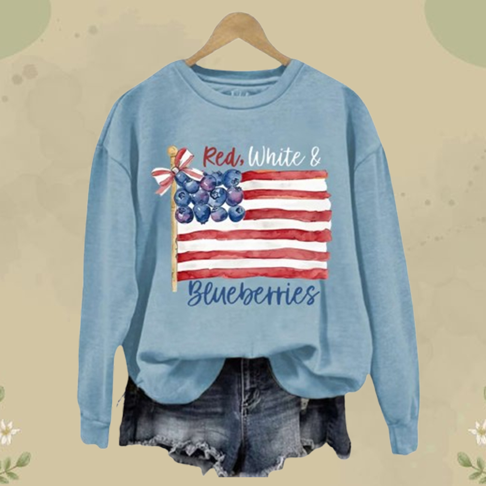 Women’s Red White And Blueberries Printed Sweatshirt: A Stylish and Cozy Way to Show Your Pride!