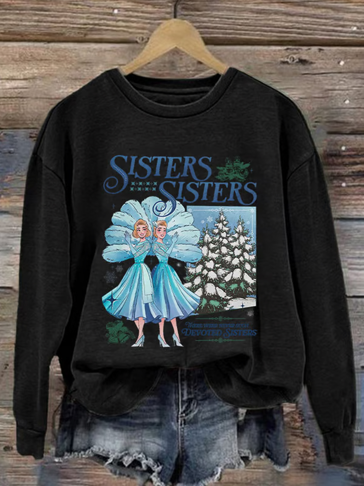 Women’s Sisters Christmas Printed Round Neck Sweatshirt