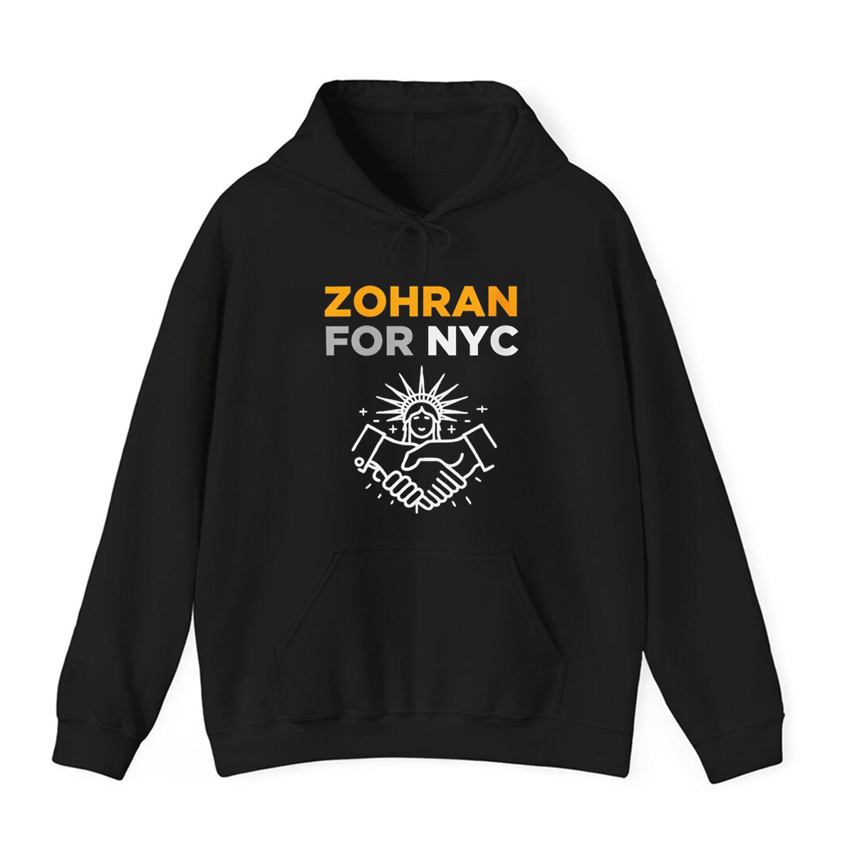 The Zohran For NYC Mayor Shirt is a sleek, statement-making tee that turns civic pride into street style. Printed on classic black cotton, it features bold yellow and white text that reads ZOHRAN FOR NYC, paired with a striking graphic of two hands shaking beneath the radiant crown of the Statue of Liberty. Soft, breathable, and made for everyday wear, this shirt balances political enthusiasm with fashion-forward simplicity. It’s perfect for rallies, city strolls, or anyone ready to show some New York grit.